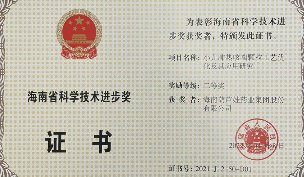 PA旗舰厅药业集团申报的专利“克咳片及其制备方法”荣获 第四届海南省专利奖金奖